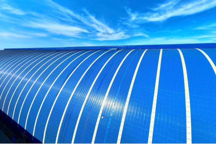 Đối với hệ sơn PVDF 0.79 xanh dương tím, Tôn Hòa Phát cung cấp khoảng 300.000m2 diện tích lợp, sử dụng nhà cung cấp sơn PPG (Mỹ) chủ yếu lợp mái ở khu vực lò luyện thép.
